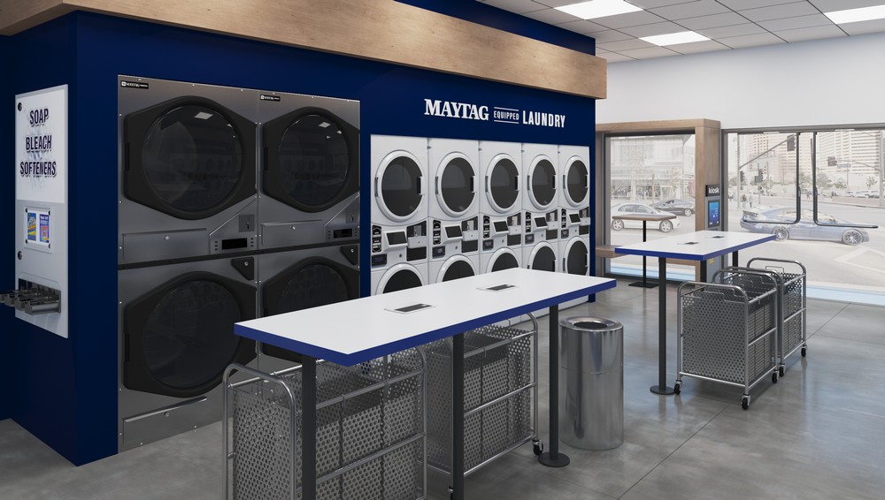 При организации прачечной самообслуживания приобретаются стиральные и сушильные машины в комплекте с терминалом оплаты. При организации прачечной самообслуживания наша компания рекомендует профессиональное прачечное оборудование европейского производителя Maytag.